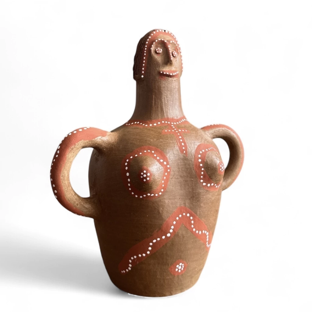Escultura "Simplesmente Mulher" feita em cerâmica e pintada com pigmentos de origem mineral.