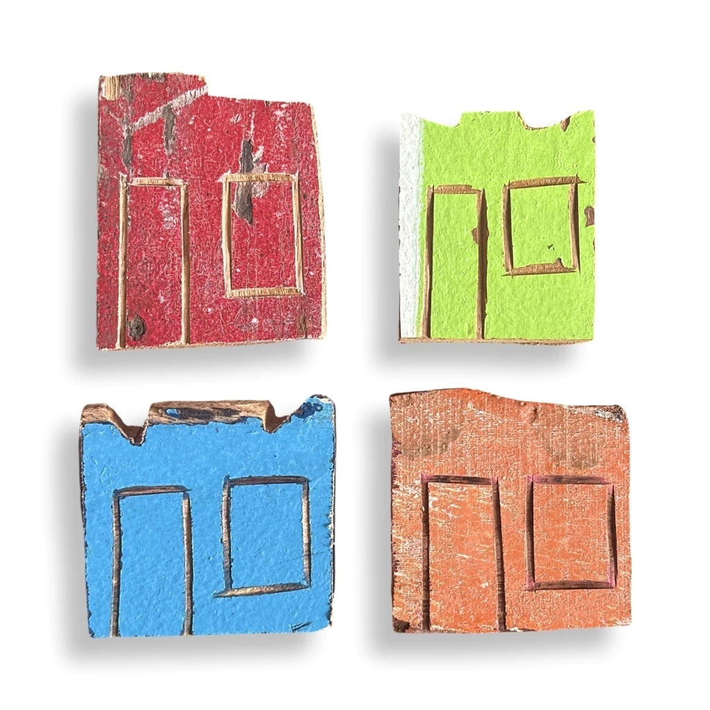 Casinha feita com madeiras desgastadas pelo tenmpo, provenientes de antigas embarcações do Rio São Francisco. Possui furo da parte traseira para ser pendurada na parede.