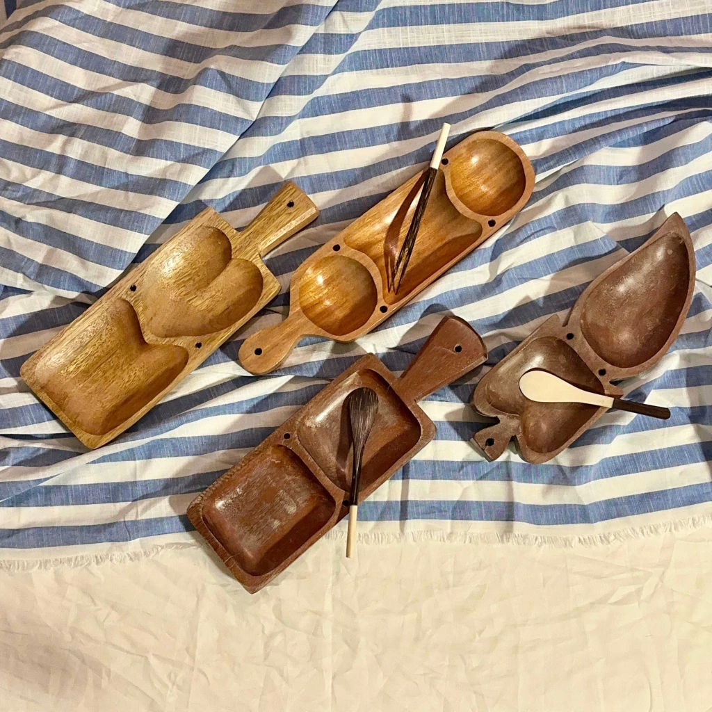 Petisqueira retangular em madeira.