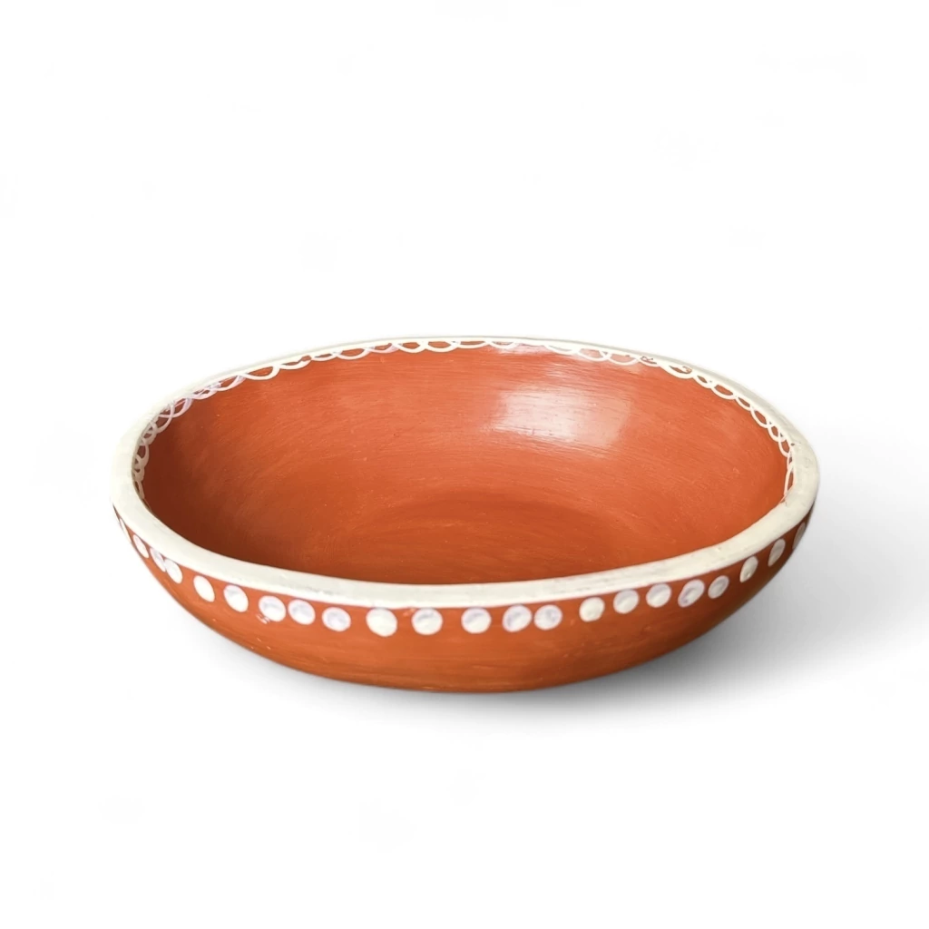 Seus delicados ornamentos são característicos de cada artesã e as cores são resultado de pigmentos naturais diversos diluídos em água. Após a pintura as peças vão para o forno e depois da queima estas peças de extrema qualidade e beleza estão prontas para o uso.